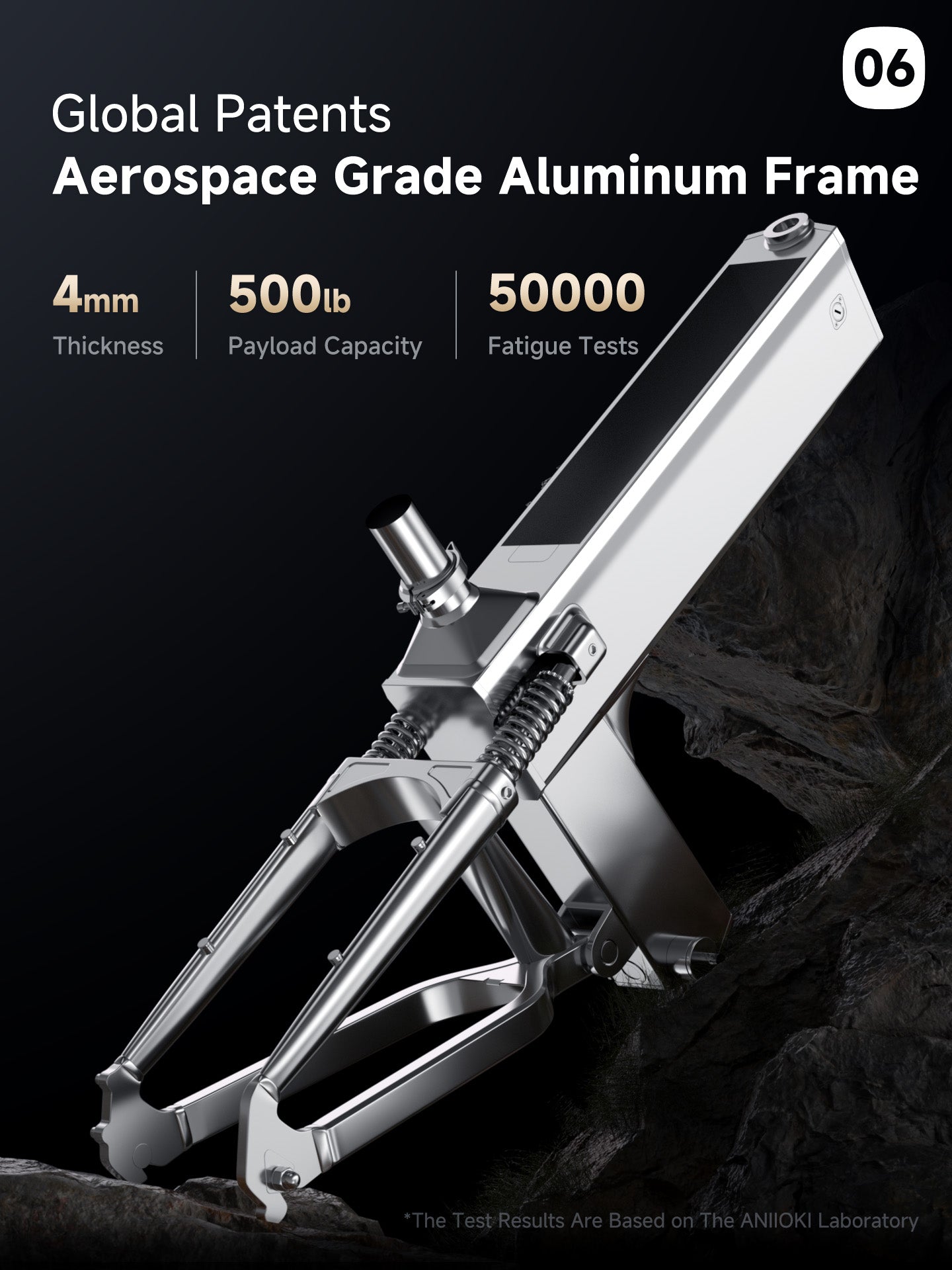 It boasts a globally patented aluminum frame, just 4mm thick yet twice as robust as traditional bike frames, significantly boosting strength and durability. Rigorously tested for durability and safety, it ensures consistent performance and reliable rides every time. This sturdy frame supports up to 500 pounds while maintaining stable motor and battery operation.
