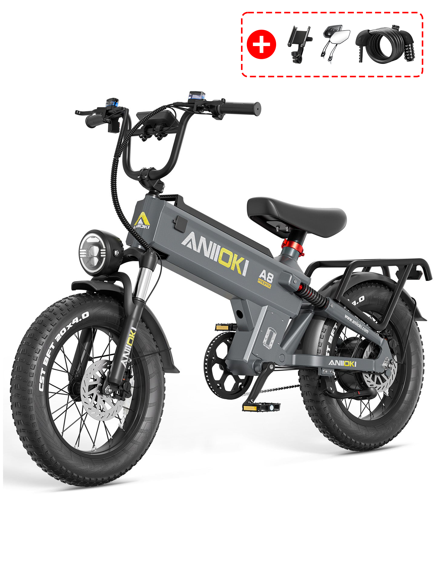 Unique inverter design turns the Aniioki Ebikes battery into a portable power source, perfect for charging devices on the go or powering camping gear like refrigerators and grills.