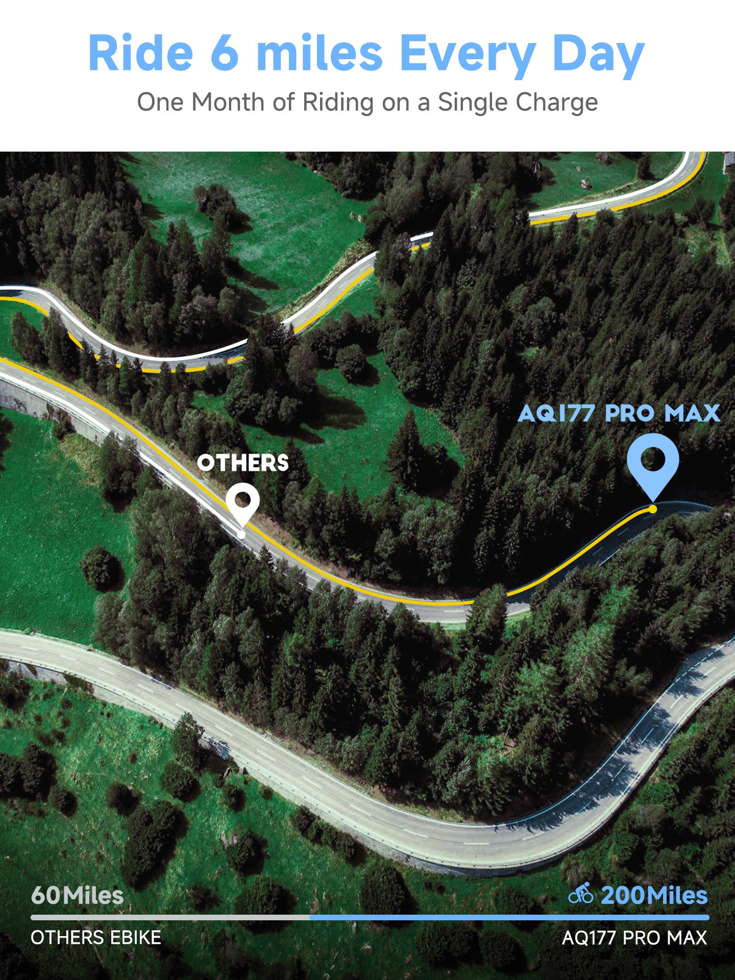 Our battery has undergone a groundbreaking upgrade: featuring a high-strength shell and an advanced Battery Management System (BMS) for all-round protection, ensuring your absolute riding safety. Plus, with exceptional energy density, a single charge delivers over 200 miles of range—50%+ more than most electric bikes.